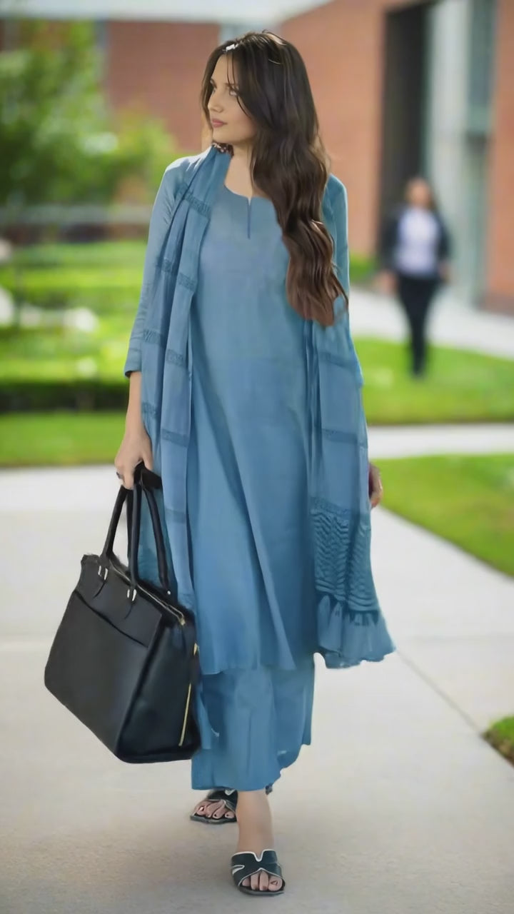 New Women's Rayon Blend Solid Straight Blue 3Pc Kurta Set
