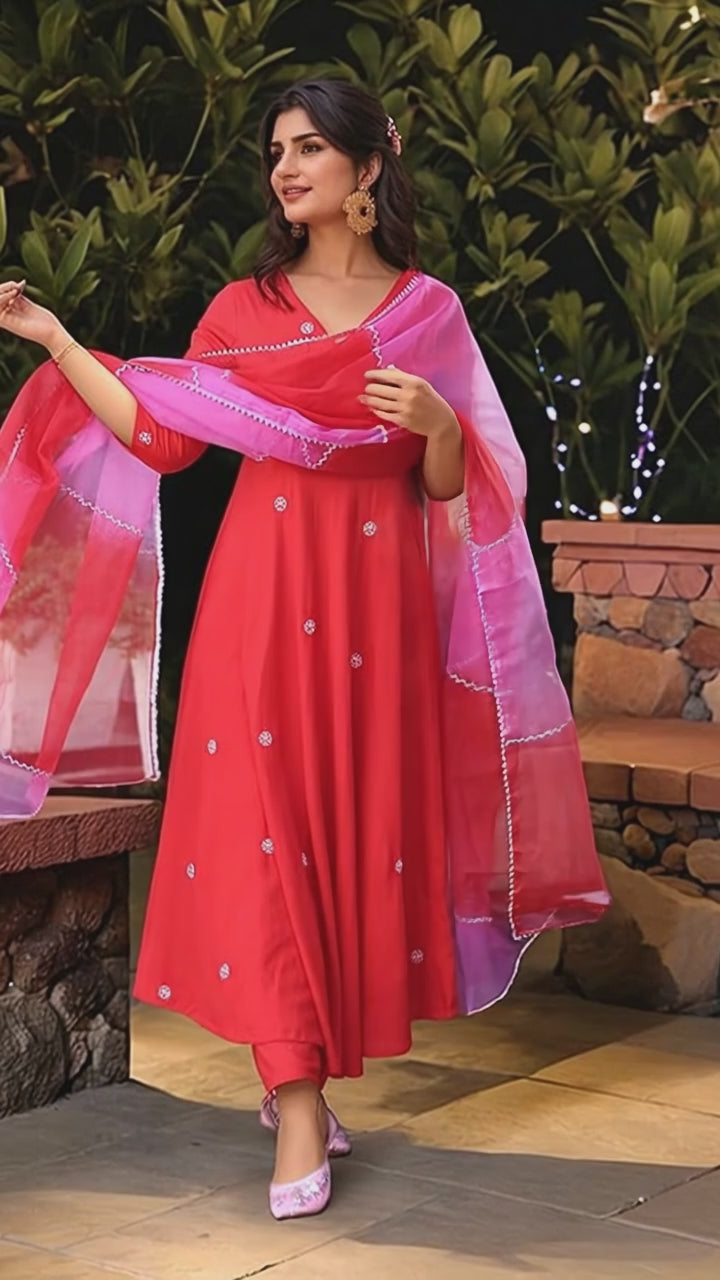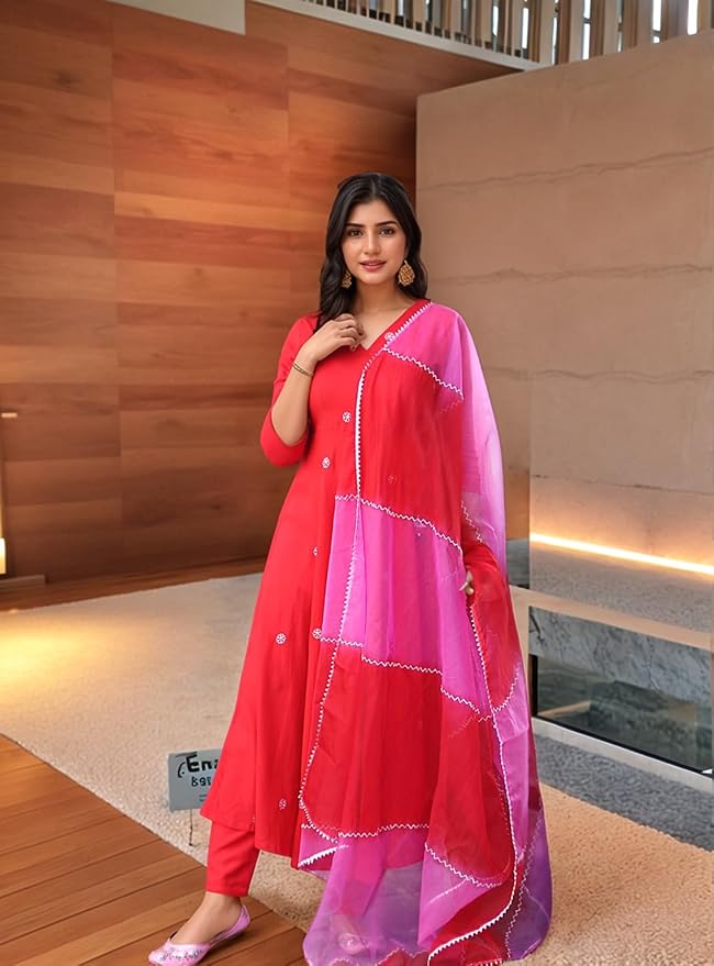New Women's Rayon Viscose Anarkali Embroidered 3Pc Kurta Set