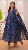 New Women's Women Blue Printed Anarkali 3Pc Kurta Set