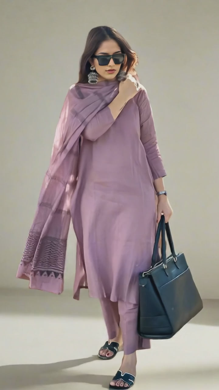 Women's Rayon Blend Solid Straight Purple 3Pc Kurta Set